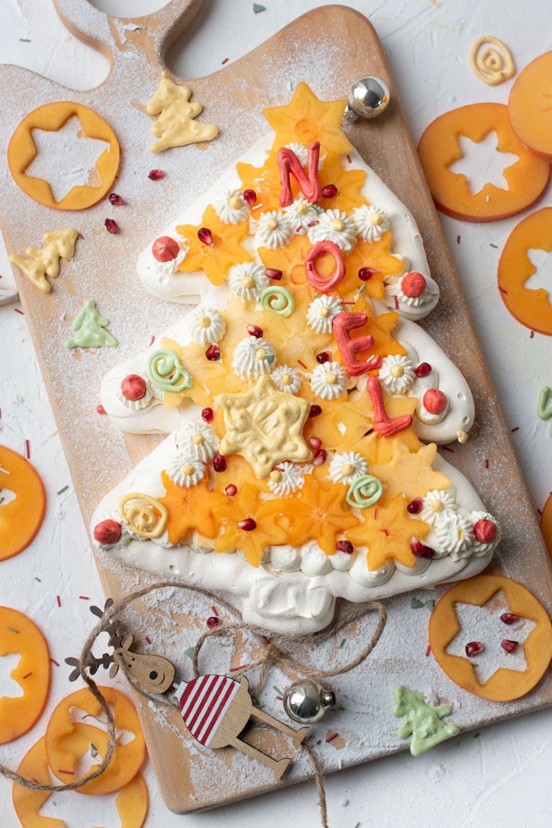 Ce sapin en meringue est pensé pour être réussi du premier coup, grâce à une recette de pavlova fiable, contenant le minimum de sucre nécessaire pour une tenue parfaite, légère et croustillante. Il suffit de créer son gabarit sur une feuille de papier sulfurisé pour donner vie à une pièce unique, sans stress et sans matériel compliqué. L’avantage ? Cette recette est déclinable à l’infini. On change la forme de la pavlova pour l’adapter à toutes les saisons, et on varie les fruits selon l’envie : fruits rouges, agrumes, fruits exotiques… Chaque création devient différente, mais toujours aussi magique.